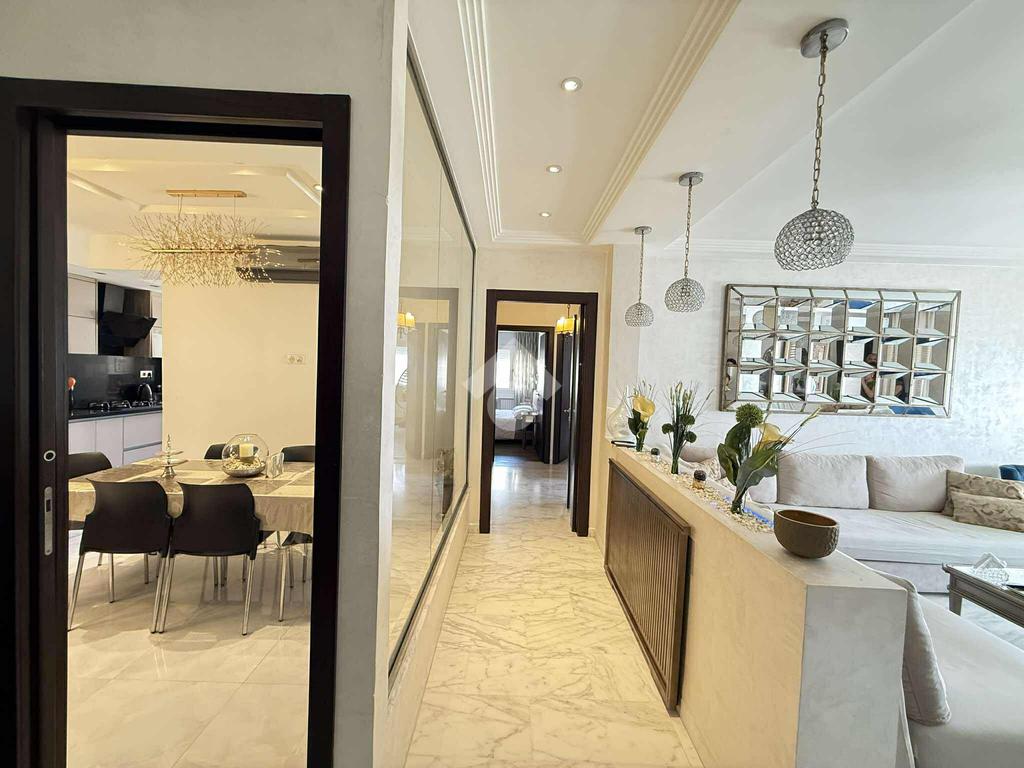 Dès l’entrée, vous êtes accueilli par un hall menant à un salon baigné de lumière naturelle et s'ouvre sur un balcon qui offre une vue dégagée.