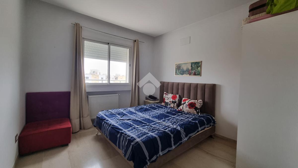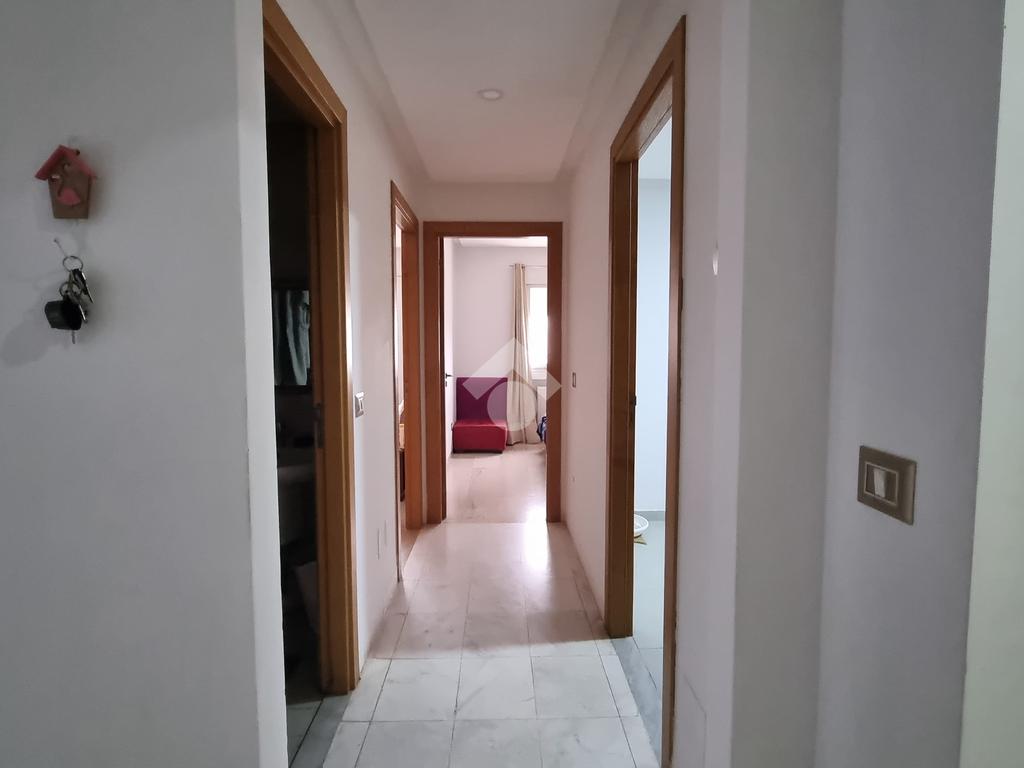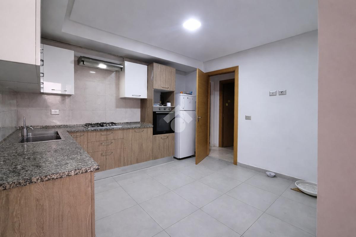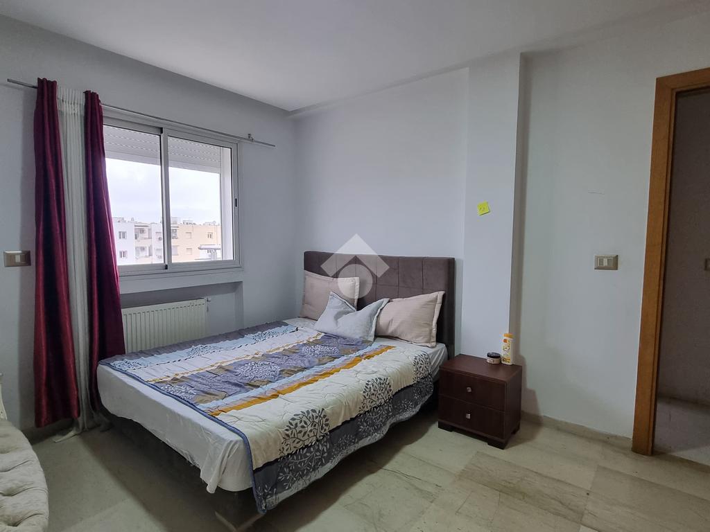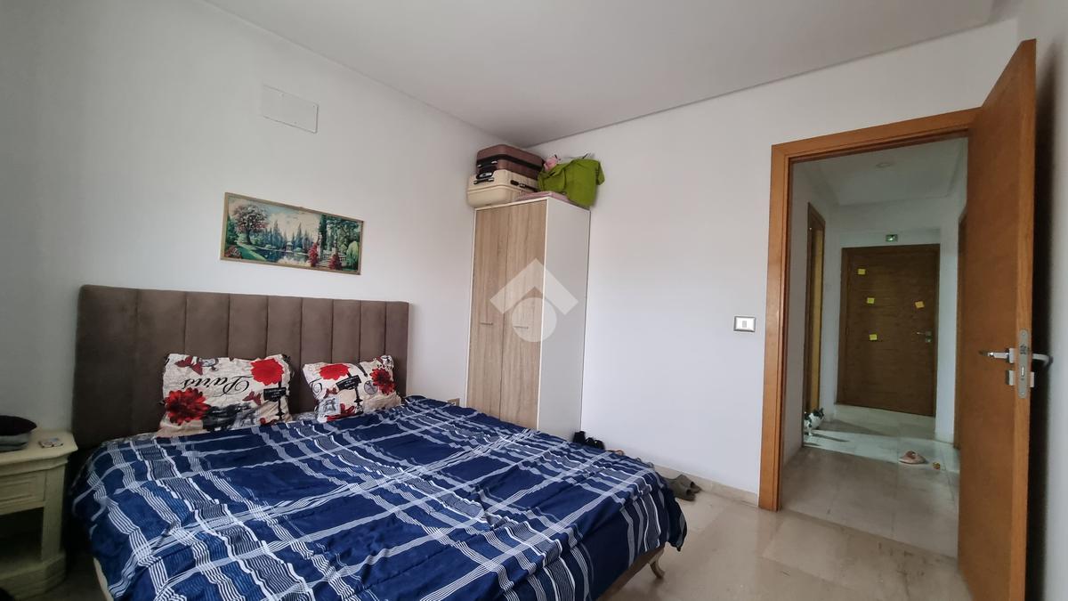 Cet appartement S+3 occupe le dernier étage d’une résidence sécurisée en R+7, dotée d’un double ascenseur. Il bénéficie d’un emplacement accessible et proche de toutes les commodités à Cité les Palmeraies – l’Aouina. Dès l’entrée, une pièce de vie lumineuse grâce à un accès direct au balcon donne sur une vue sans vis-à-vis. La cuisine aménagée avec des rangements est équipée d’une plaque de cuisson, d’une hotte aspirante et d’un four. Un séchoir est disponible pour plus de fonctionnalité. Une salle d’eau invités vient compléter la partie jour. Dans la continuité, un hall mène à la partie nuit, qui loge deux chambres à coucher, dont une avec dressing. Une salle de bain commune complète la partie nuit. L’appartement est équipé du chauffage central et de la climatisation en split système.