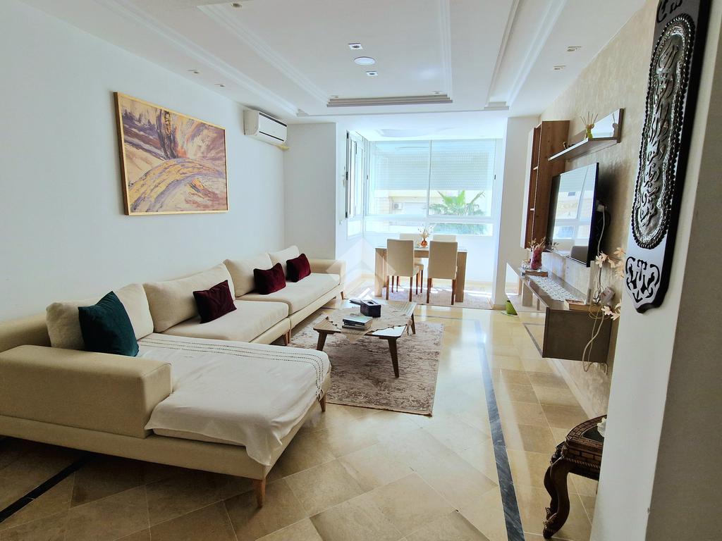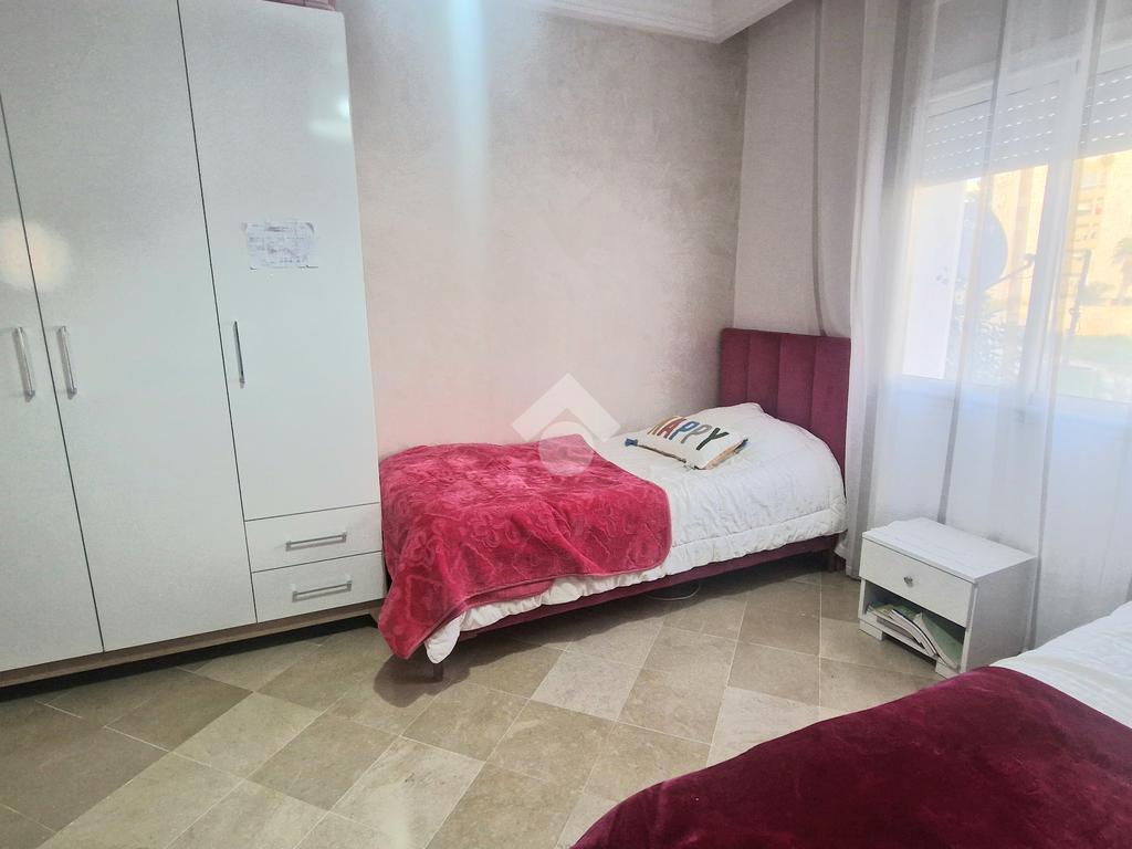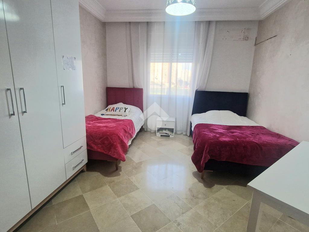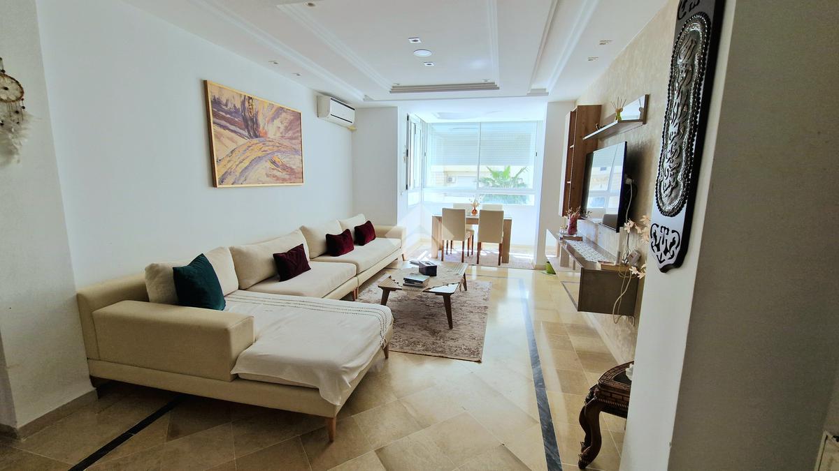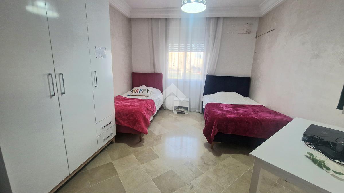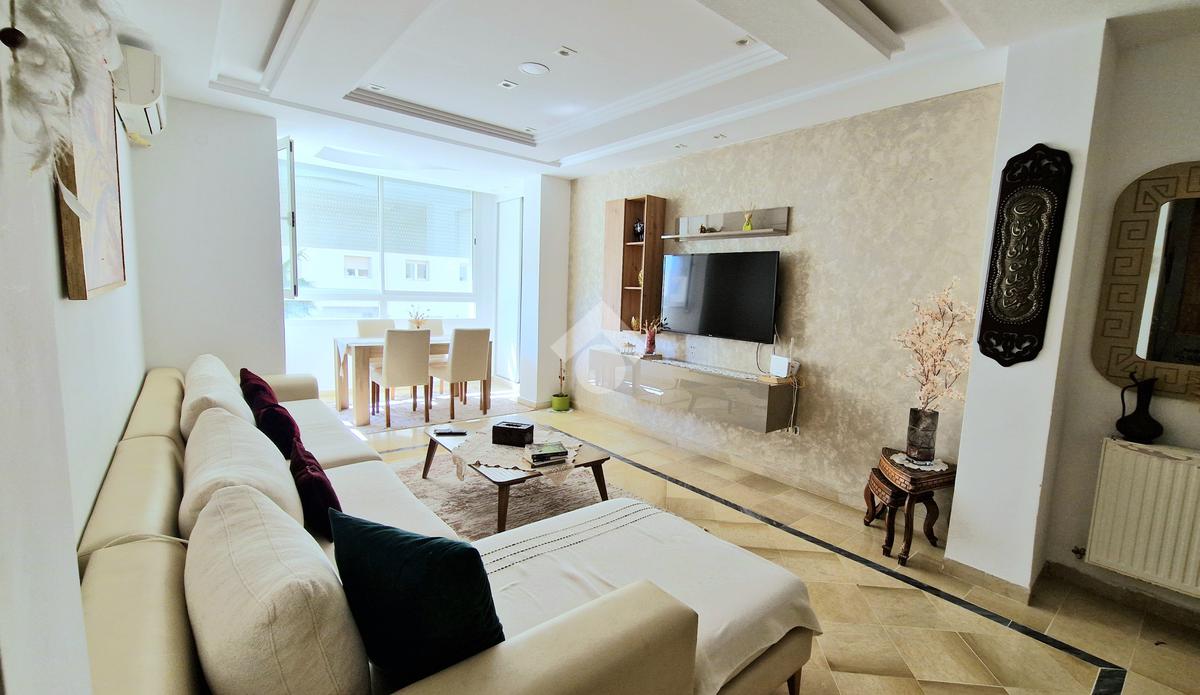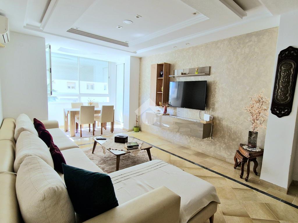 Cet appartement S+2 occupe le premier étage d’une résidence sécurisée avec double ascenseur, idéalement située à Cité El Aouina. Dès l’entrée, un espace de vie spacieux permet d’accueillir un salon et une salle à manger. La cuisine est aménagée et équipée d’une plaque de cuisson, d’une hotte aspirante et d’un four. Un séchoir est prévu pour plus de fonctionnalité. Dans la continuité, un hall avec placards pour plus de rangement. La partie nuit loge deux chambres à coucher avec dressings. Une salle de bain commune vient compléter cet espace. L’appartement est équipé du chauffage central ainsi que de la climatisation en split système. Une place de parking au sous-sol est également disponible.