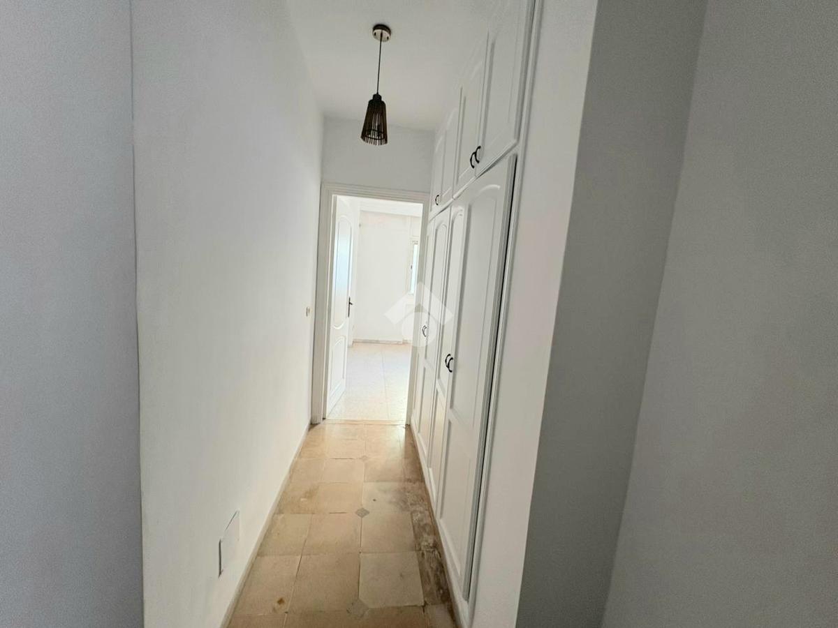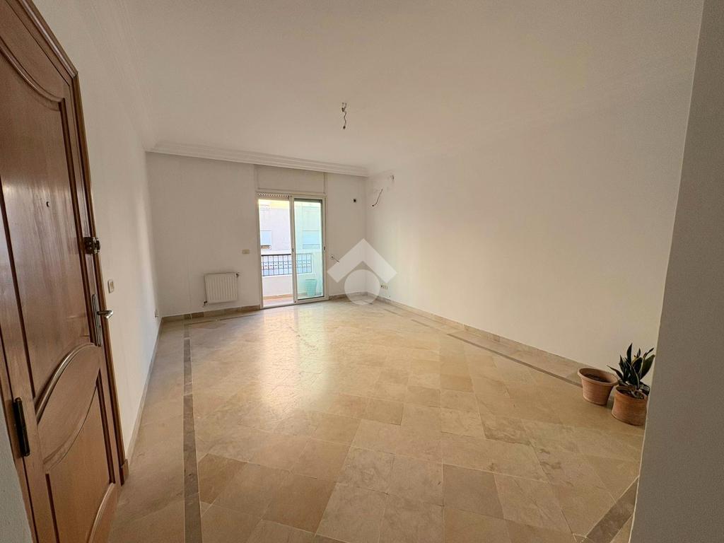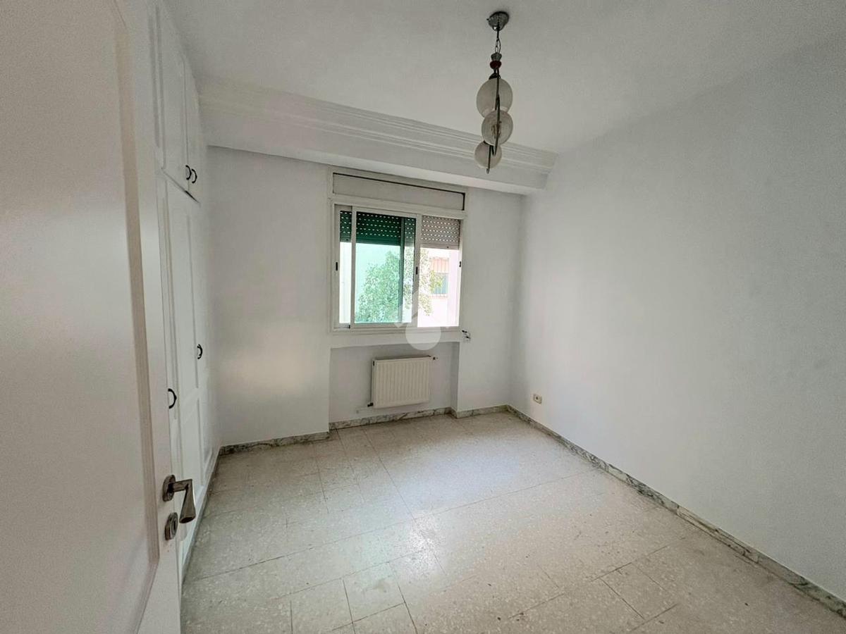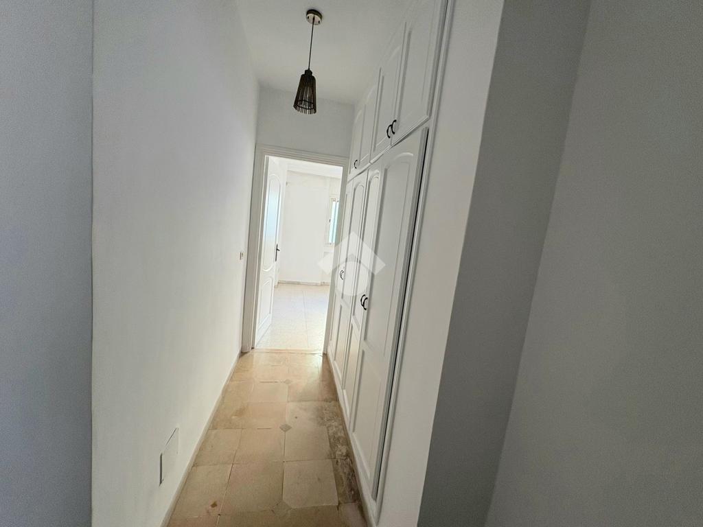 Cet appartement S+2 occupe le premier étage d’une résidence en R+2. Il bénéficie d’un emplacement calme, accessible et proche de toutes les commodités à Cité Les Palmeraies, l’Aouina. L’entrée mène à une pièce de vie lumineuse grâce à son ouverture sur un balcon. La cuisine aménagée est équipée de rangements. Un séchoir est disponible pour plus de fonctionnalité. Dans la continuité, un placard offre davantage de rangements. La partie nuit abrite deux chambres à coucher, dont une avec dressing. Une salle de bain commune complète cet espace. L’appartement est équipé d’un chauffage central. Une place de parking au sous-sol ainsi qu’un cellier sont disponibles.