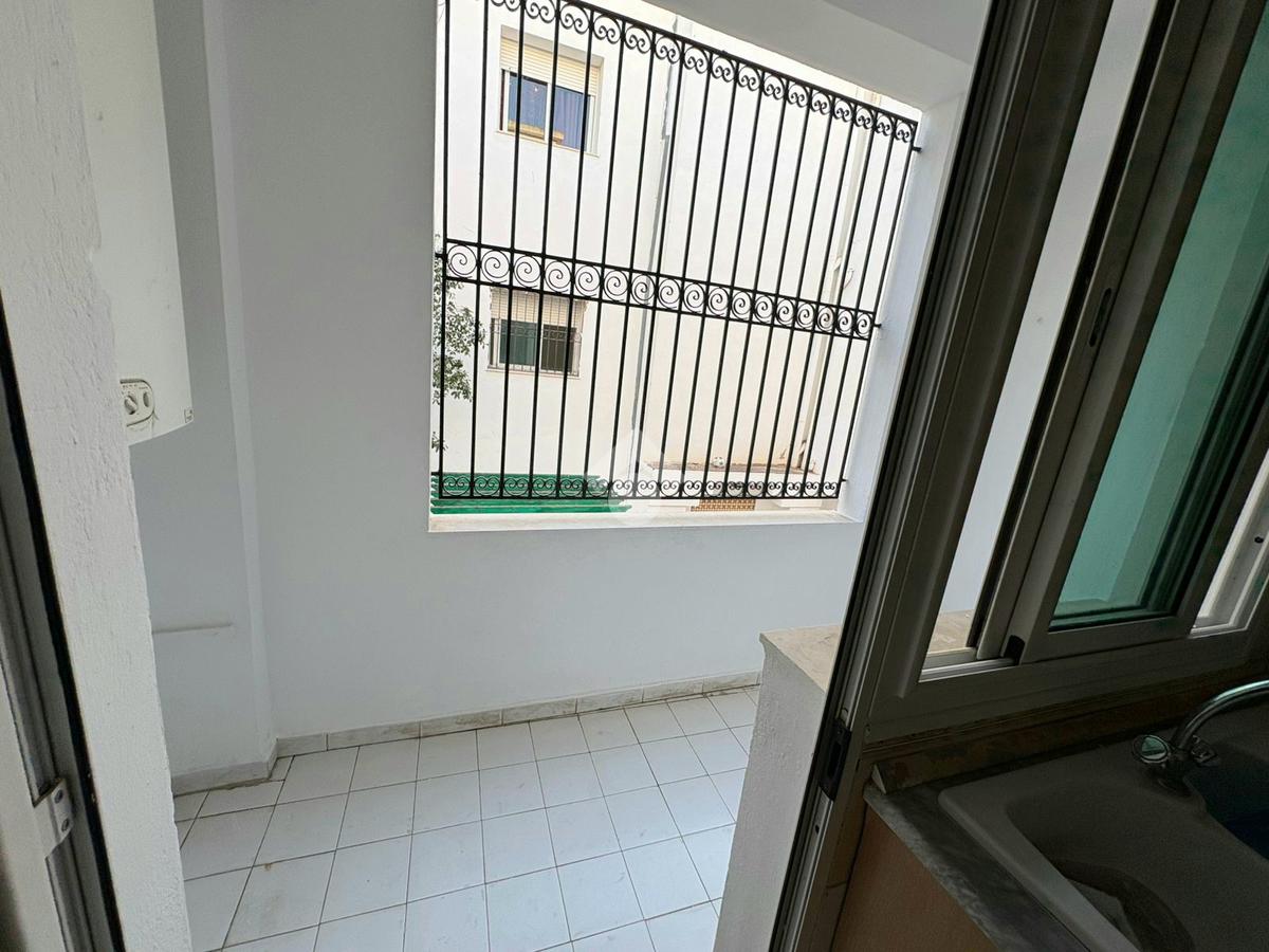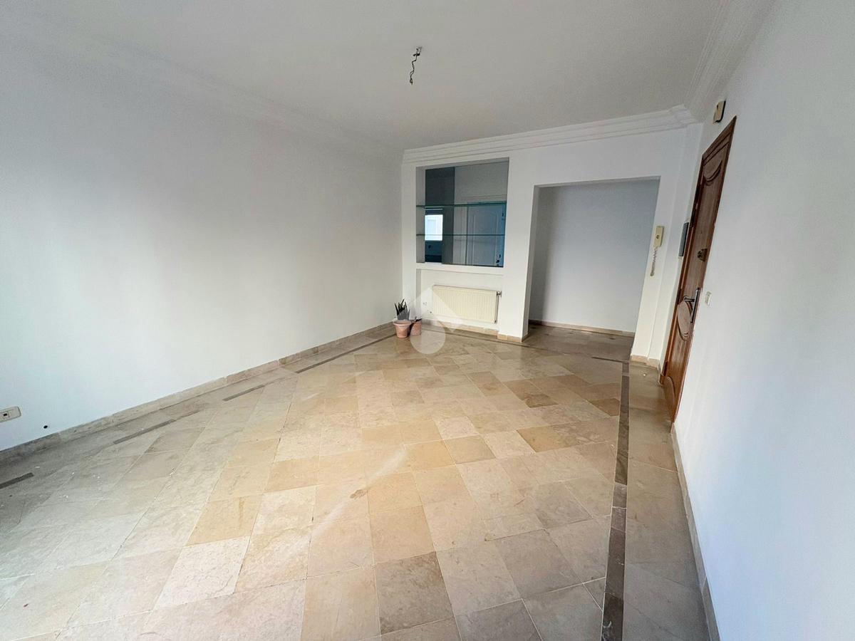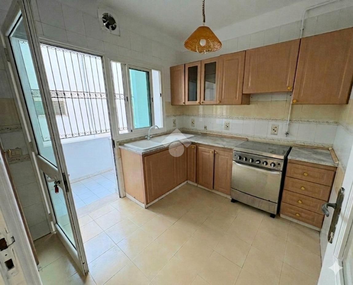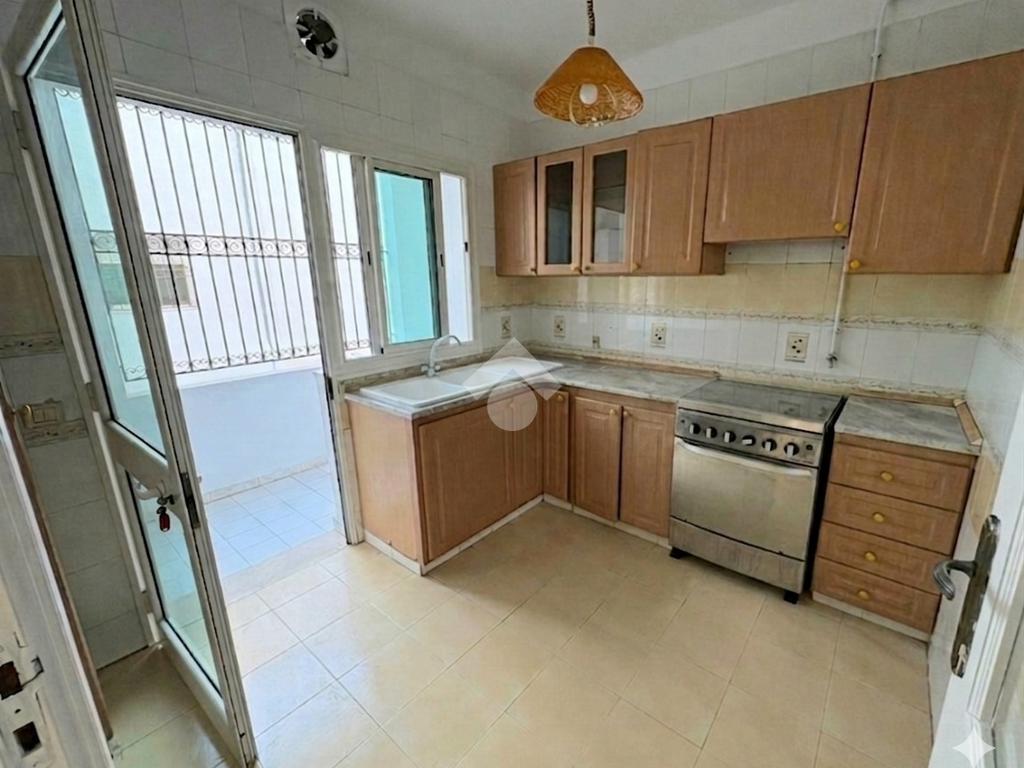 Cet appartement S+2 occupe le premier étage d’une résidence en R+2. Il bénéficie d’un emplacement calme, accessible et proche de toutes les commodités à Cité Les Palmeraies, l’Aouina. L’entrée mène à une pièce de vie lumineuse grâce à son ouverture sur un balcon. La cuisine aménagée est équipée de rangements. Un séchoir est disponible pour plus de fonctionnalité. Dans la continuité, un placard offre davantage de rangements. La partie nuit abrite deux chambres à coucher, dont une avec dressing. Une salle de bain commune complète cet espace. L’appartement est équipé d’un chauffage central. Une place de parking au sous-sol ainsi qu’un cellier sont disponibles.